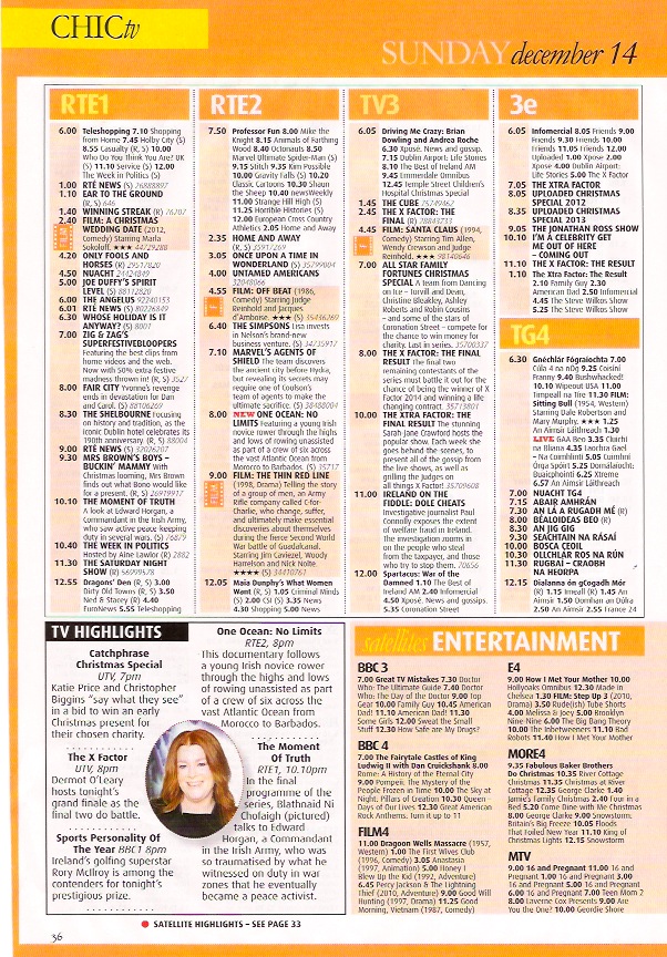 Irish Daily Star's Chic Magazine - TV Highlights (above - click link for larger image)